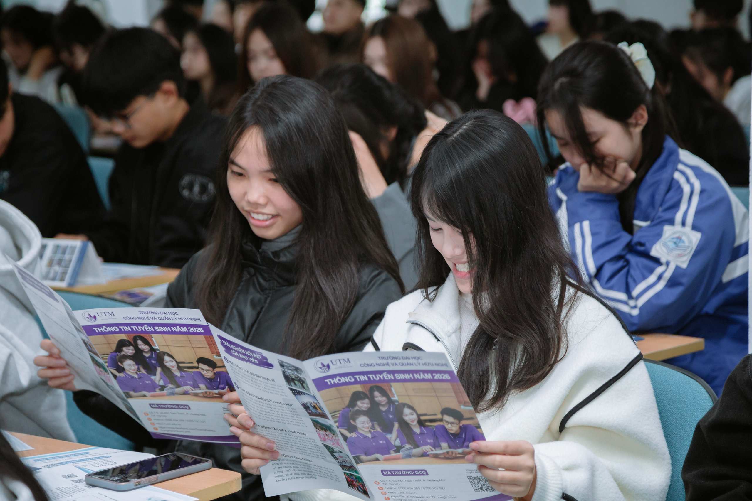 Tại chương trình, đại diện UTM cũng giới thiệu nhiều chính sách thiết thực dành cho tân sinh viên như: tặng laptop cho tân sinh viên nhập học, tạo điều kiện học tập và tiếp cận công nghệ ngay từ những ngày đầu; cam kết 100% sinh viên được giới thiệu việc làm sau khi tốt nghiệp thông qua mạng lưới hơn 100 doanh nghiệp đối tác của nhà trường; cùng với đó là hệ thống ngành nghề đào tạo đa dạng trải rộng từ khối công nghệ - kỹ thuật, kinh tế, ngôn ngữ đến du lịch, đáp ứng xu hướng phát triển của thị trường lao động hiện nay.